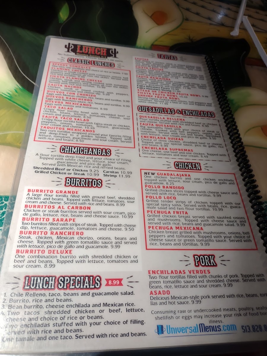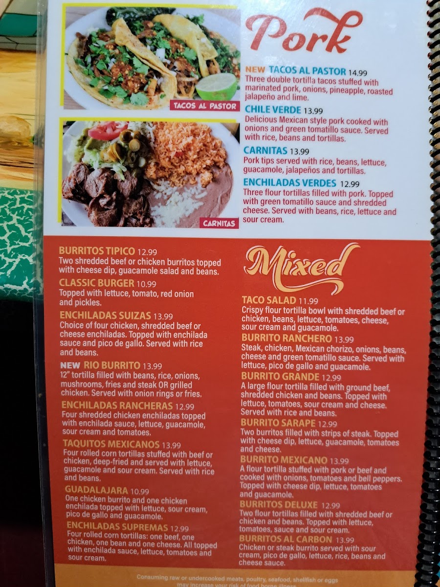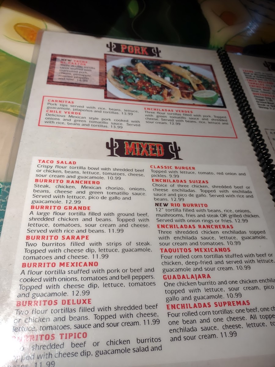Introducing the Menu of El Rio Grande Mexican Restaurant